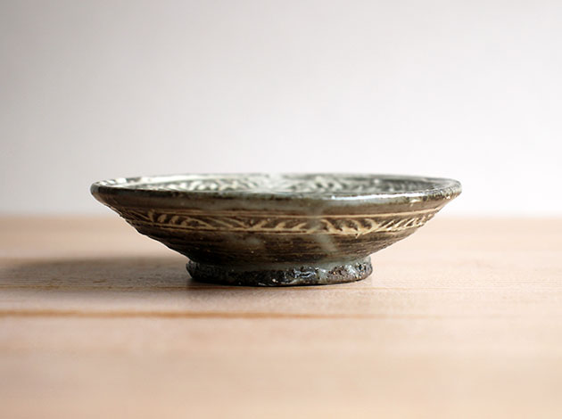 小さいけれど、裏まで模様の入った細やかな豆皿。落ち着いた色味も福永さんならでは。小さなお菓子やちょっともお香のもの、酒肴、薬味などに活躍しそうです。