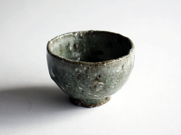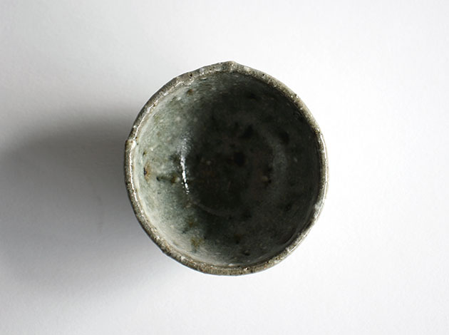 鉄分と石の多い土を使ったぐいのみ。ごつごつとワイルドでありながら、どこかやさしい雰囲気は長谷川さんならでは。 ところどころピンクの出た色合いも素敵です。