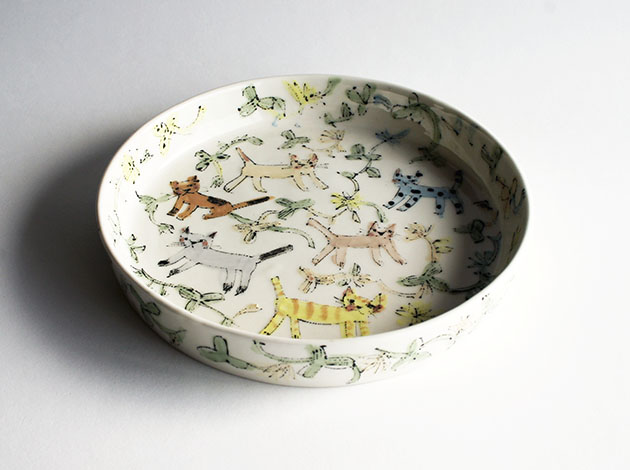 おしゃれで個性的なネコたちが散りばめられた楽しいドラ鉢。ソフトな色合いが素敵です。 食事の時間もおやつの時間もウキウキしそう。