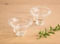 デザートに、オードブルに、ちょっと冷たいスープを入れても。幅広く愉しめそうなモールのカップ。底が小さいですが、株がどっしりしているので安定感があります。